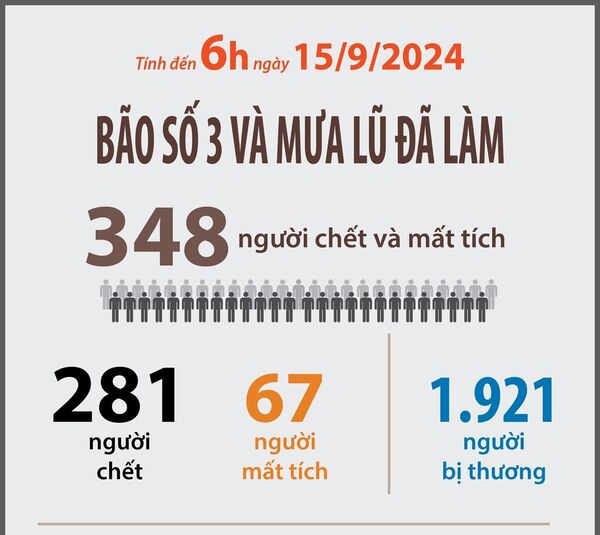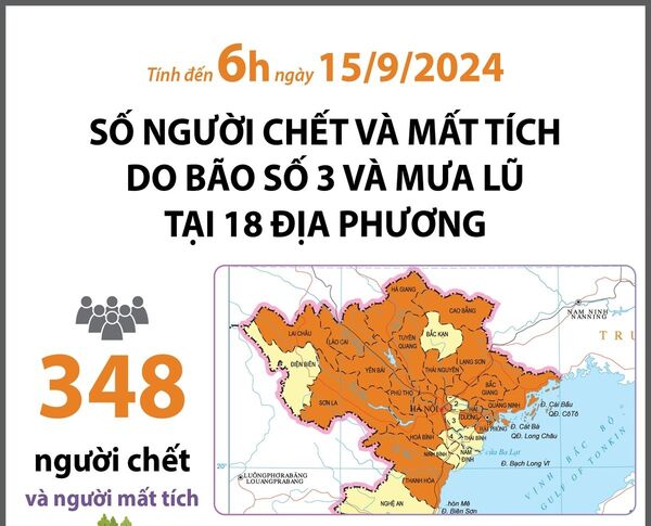 • Cập nhật người chết và mất tích của 18 địa phương (tính đến 6h ngày 15/9/2024)