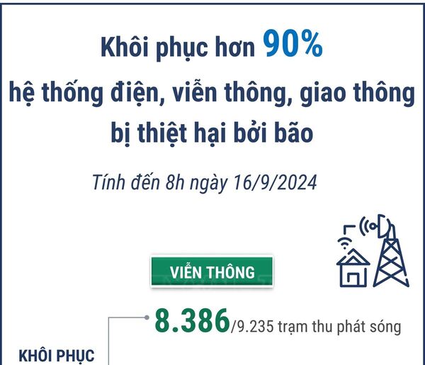 • Khôi phục hơn 90% hệ thống điện, viễn thông, giao thông bị thiệt hại bởi bão số 3