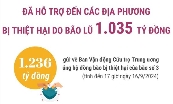 • Đã hỗ trợ đến các địa phương bị thiệt hại do bão lũ 1.035 tỷ đồng