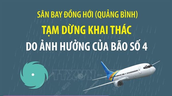 • Sân bay Đồng Hới (Quảng Bình) tạm dừng khai thác do ảnh hưởng của bão số 4