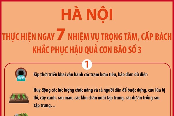 • Hà Nội thực hiện ngay 7 nhiệm vụ trọng tâm, cấp bách khắc phục hậu quả cơn bão số 3 (phần 1)