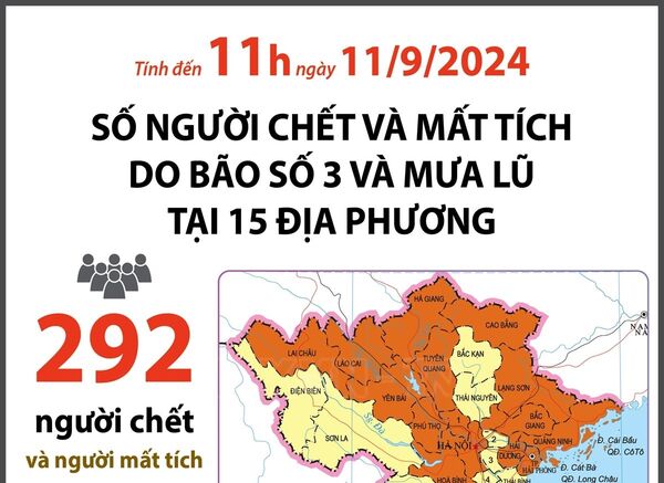 • 292 người chết và mất tích do bão số 3 và mưa lũ (tính đến 11 giờ ngày 11/9/2024)