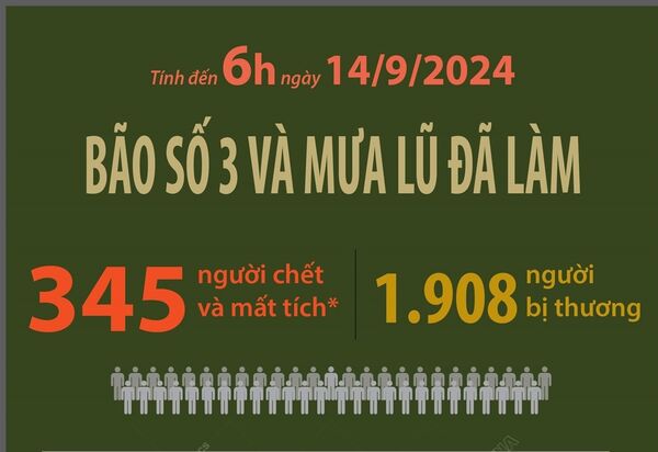 • Thiệt hại do bão số 3 và mưa lũ tính đến 6 giờ ngày 14/9/2024