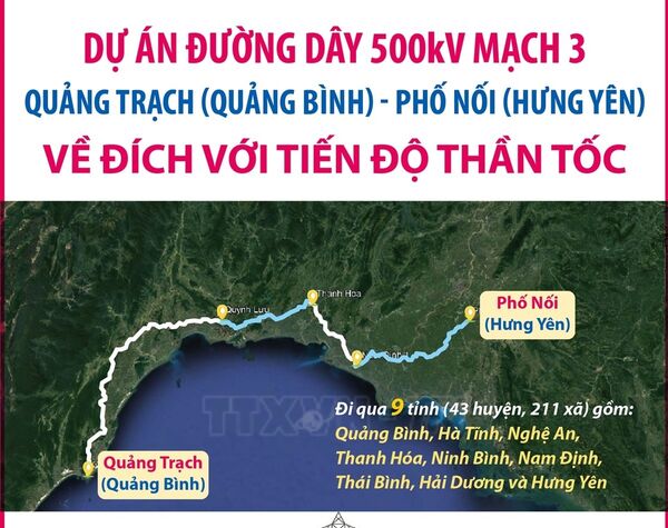 • Dự án đường dây 500kV mạch 3 Quảng Trạch (Quảng Bình) - Phố Nối (Hưng Yên) về đích với tiến độ thần tốc