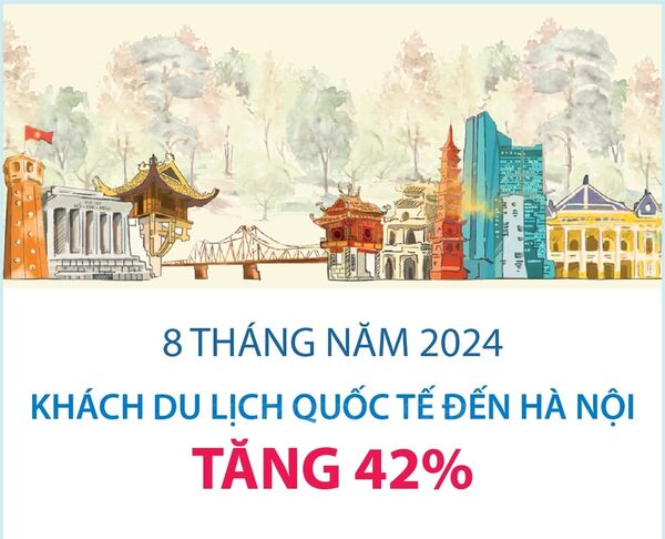 • 8 tháng năm 2024: Khách du lịch quốc tế đến Hà Nội tăng 42%