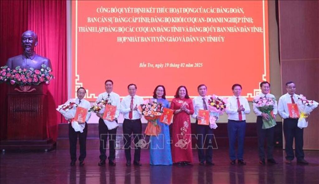 Ban Tổ chức Tỉnh ủy Bến Tre công bố quyết định hợp nhất Ban Tuyên giáo và Ban Dân vận Tỉnh ủy thành Ban Tuyên giáo và Dân vận Tỉnh ủy Bến Tre kể từ ngày 1/3/2025; bổ nhiệm Trưởng Ban Dân vận Tỉnh ủy Bùi Văn Bia giữ chức Trưởng Ban Tuyên giáo và Dân vận Tỉnh ủy.