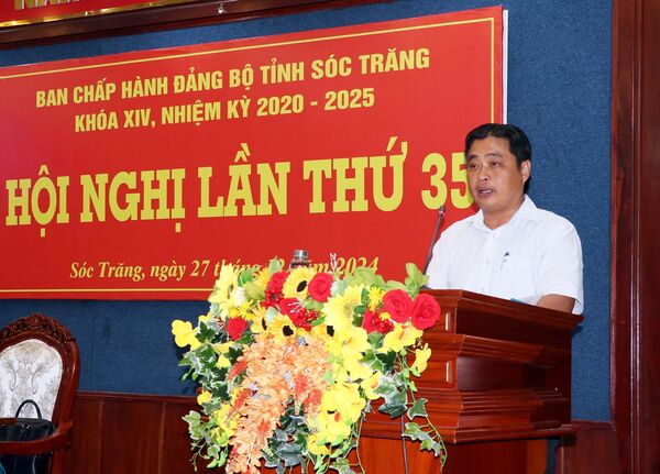 Giám đốc Sở Nội vụ tỉnh Bắc Ninh Lê Hồng Phúc trình bày Báo cáo tóm tắt Đề án sắp xếp tổ chức bộ máy theo Kết luận số 09-KL/BCĐ ngày 24/11/2024 của Ban Chỉ đạo Trung ương về tổng kết thực hiện Nghị quyết số 18-NQ/TW ngày 25/10/2017 của Ban Chấp hành Trung ương Đảng khóa XII "Một số vấn đề tiếp tục đổi mới, sắp xếp tổ chức bộ máy của hệ thống chính trị tinh gọn, hoạt động hiệu lực, hiệu quả". Hiện, tổ chức bộ máy và đội ngũ cán bộ khối Đảng của tỉnh Bắc Ninh có 6 ban, cơ quan tham mưu giúp việc Tỉnh ủy, 5 đảng đoàn, đơn vị sự nghiệp với 63 phòng chuyên môn. Tổng số biên chế là 718 người, trong đó lãnh đạo cấp phòng (và tương đương) 62 người.