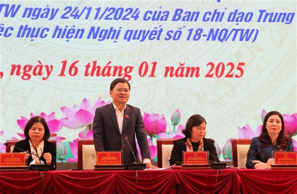 Bí thư Tỉnh ủy, Trưởng đoàn Đại biểu Quốc hội tỉnh Bắc Ninh Nguyễn Anh Tuấn chia sẻ những tâm tư, băn khoăn của các tập thể, cá nhân trong quá trình triển khai sắp xếp tổ chức bộ máy, tinh giản biên chế. Đồng thời yêu cầu các cơ quan trong hệ thống chính trị tiếp tục hoạt động hiệu lực, hiệu quả, không gián đoạn, không ảnh hưởng trước, trong và sau sáp nhập. Các đơn vị thuộc diện sáp nhập khẩn trương bố trí sắp xếp nhân lực, quy chế tổ chức hoạt động để khi chính thức có hiệu lực bộ máy đi vào hoạt động ngay. Tỉnh sẽ vận dụng tối đa các cơ chế, chính sách để cán bộ khi nghỉ trước hạn, sắp xếp được hưởng chính sách nhà nước nhiều nhất.