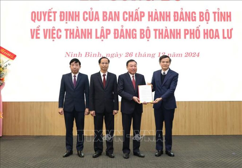 Trưởng Ban Tổ chức Tỉnh ủy Tô Văn Từ đã công bố Quyết định số 1492-QĐ/TU ngày 18/12/2024 của Ban Chấp hành Đảng bộ tỉnh về việc thành lập Đảng bộ thành phố Hoa Lư trên cơ sở hợp nhất Đảng bộ thành phố Ninh Bình gồm 69 tổ chức cơ sở đảng với 11.375 đảng viên và Đảng bộ huyện Hoa Lư gồm 54 cơ sở đảng với 5.246 đảng viên. Nhiệm kỳ đầu tiên của Đảng bộ thành phố Hoa Lư là 2020 - 2025. Đảng bộ thành phố Hoa Lư là tổ chức đảng trực thuộc Đảng bộ tỉnh Ninh Bình, chính thức đi vào hoạt động từ ngày 1/1/2025.