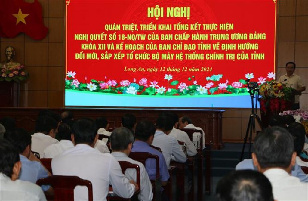 Ngày 12/12, Tỉnh ủy Long An tổ chức Hội nghị trực tiếp và trực tuyến đến lãnh đạo các xã, phường, thị trấn để quán triệt một số chủ trương về định hướng sắp xếp tổ chức bộ máy hệ thống chính trị tỉnh tinh gọn, hoạt động hiệu lực, hiệu quả.