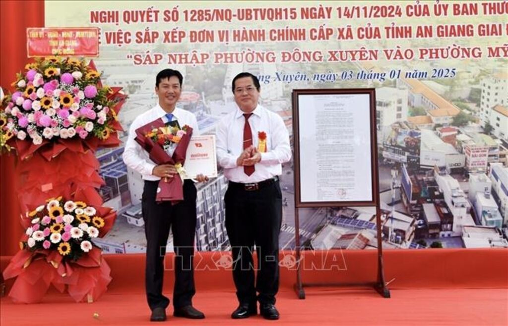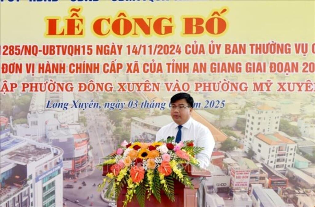 Ngày 3/1, Thành ủy Long Xuyên, tỉnh An Giang tổ chức Lễ công bố Nghị quyết số 1285/NQ-UBTVQH15, ngày 14/11/2024 của Ủy ban Thường vụ Quốc hội về việc sắp xếp đơn vị hành chính cấp xã của tỉnh, giai đoạn 2023 - 2025.