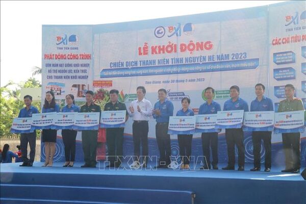 TTXVN - Ngày 2/6, tại huyện Vĩnh Thuận, Tỉnh đoàn Kiên Giang ra quân Chiến dịch Thanh niên tình nguyện hè 2023 với 6 đội hình thanh niên tình nguyện gồm: Tiếp sức mùa thi, Hoa phượng đỏ, Hành quân xanh, Kỳ nghỉ hồng, Mùa hè xanh, Tổ công nghệ số cộng đồng.