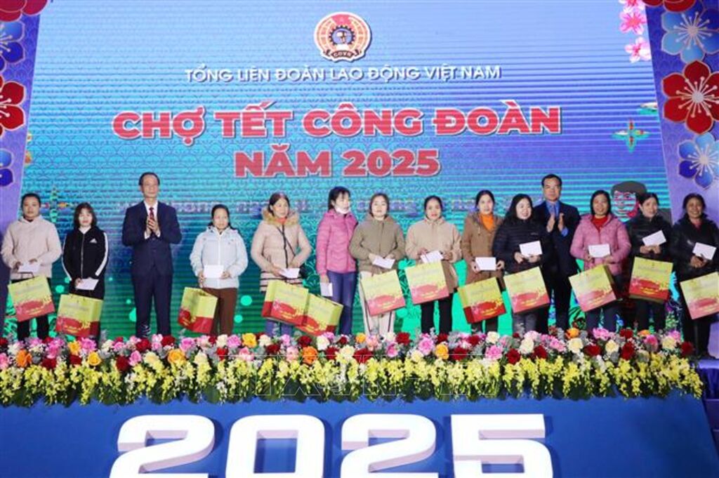 Tiêu biểu là các chương trình: “Chợ Tết Công đoàn năm 2025” trực tiếp và “Chợ Tết Công đoàn năm 2025” trực tuyến qua website của Tổng Liên đoàn Lao động Việt Nam; “Chuyến bay Công đoàn”, “Chuyến tàu Công đoàn - Xuân 2025” ở cấp Tổng Liên đoàn Lao động Việt Nam. Bên cạnh đó, các chương trình “Tết Sum vầy”, Ngày hội công nhân, Chợ Tết Công đoàn, các chuyến xe miễn phí đưa, đón đoàn viên, người lao động về quê đón Tết, tặng “Mái ấm Công đoàn”, tặng quà tri ân đoàn viên, người lao động diễn ra sôi nổi, rộng khắp tại các cấp công đoàn…