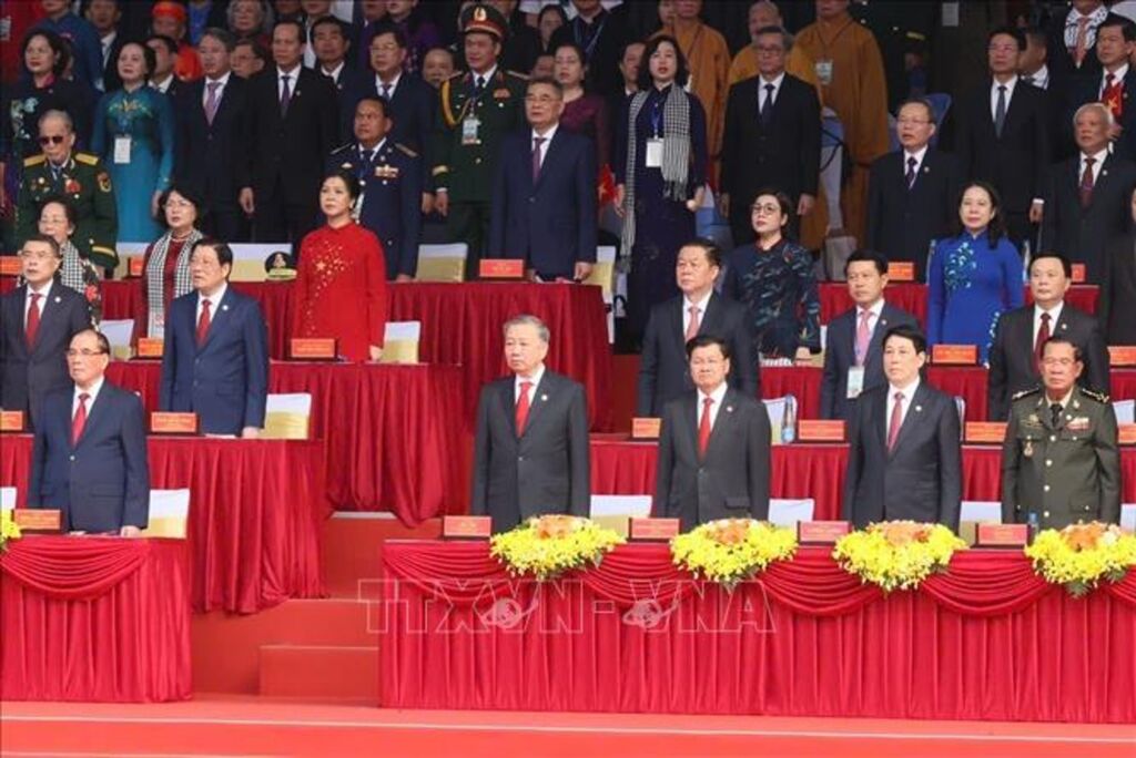 Đến dự Lễ kỷ niệm có các đoàn khách quốc tế cấp cao: Đoàn đại biểu cấp cao Đảng, Nhà nước Cộng hòa Dân chủ Nhân dân Lào do đồng chí Thongloun Sisoulith, Tổng Bí thư Đảng Nhân dân Cách mạng Lào, Chủ tịch nước Cộng hòa Dân chủ Nhân dân Lào làm Trưởng đoàn; Đoàn đại biểu cấp cao của Vương quốc Campuchia do ngài Samdech Techo Hun Sen, Chủ tịch Đảng Nhân dân Campuchia, Chủ tịch Thượng viện Vương quốc Campuchia làm Trưởng đoàn; Đoàn đại biểu Đảng, Nhà nước Cộng hòa Cuba do đồng chí Salvador Valdes Mesa, Phó Chủ tịch nước Cộng hòa Cuba làm Trưởng đoàn; Đoàn đại biểu Cộng hòa Belarus do ngài Ipatau Vadzim, Phó Chủ tịch Hạ viện Cộng hòa Belarus làm Trưởng đoàn; Đoàn đại biểu của Đảng, Nhà nước Cộng hòa Nhân dân Trung Hoa do đồng chí Bùi Kim Giai, Bộ trưởng Bộ các vấn đề quân nhân xuất ngũ làm Trưởng đoàn; các Bộ trưởng, Thứ trưởng Bộ Ngoại giao, Bộ Quốc phòng các nước, các chính đảng, các tổ chức quốc tế, Đại sứ, Trưởng cơ quan đại diện, tùy viên quốc phòng của các nước tại Việt Nam và đông đảo bạn bè quốc tế từng ủng hộ Việt Nam trong sự nghiệp đấu tranh, giải phóng dân tộc và xây dựng đất nước.