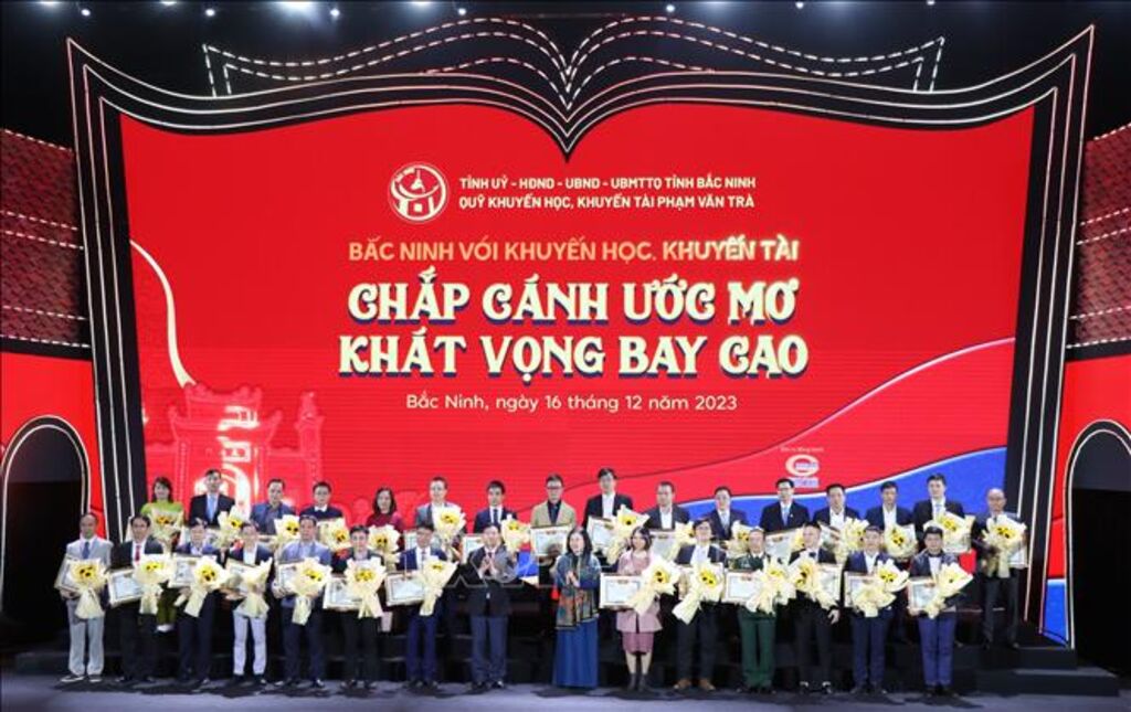 Ngay sau tọa đàm, diễn ra chương trình trao thưởng Quỹ Khuyến học, khuyến tài Phạm Văn Trà cho 163 cá nhân có thành tích tiêu biểu trên tất cả các lĩnh vực gồm: Vận động viên đạt Huy chương Vàng các giải thể dục thể thao cấp Quốc gia; học sinh có điểm thi tốt nghiệp Trung học phổ thông năm 2023 từ 28,25 đến dưới 28,60 điểm; học sinh trường Trung học phổ thông Chuyên Bắc Ninh đạt giải Ba Kỳ thi chọn học sinh giỏi Quốc gia năm học 2022 - 2023; sinh viên tốt nghiệp Đại học loại Xuất sắc; sinh viên đạt giải các cuộc thi Olympic toàn quốc; học sinh các cấp đạt giải trong cuộc thi cấp Quốc gia năm 2023./.