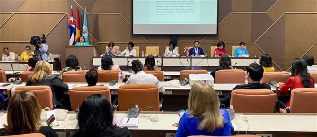 Tại hội thảo, bà Amarelle Boué nhấn mạnh những kết quả về bình đẳng giới mà Cuba đạt được, đặc biệt là việc triển khai Chương trình Quốc gia vì sự tiến bộ của phụ nữ, ủng hộ quyền bình đẳng trong các lĩnh vực kinh tế, chính trị, văn hóa, lao động, gia đình và mọi lĩnh vực khác. Theo bà Amarelle Boué, phụ nữ Cuba chiếm 62% sinh viên tốt nghiệp đại học, 67,2% kỹ thuật viên và chuyên gia và 45,4% lực lượng lao động trong khu vực nhà nước. Cuba cũng là nước có tỷ lệ nữ giới tham gia Quốc hội (55,7%) và Hội đồng Nhà nước (52,4%) cao thứ hai thế giới.