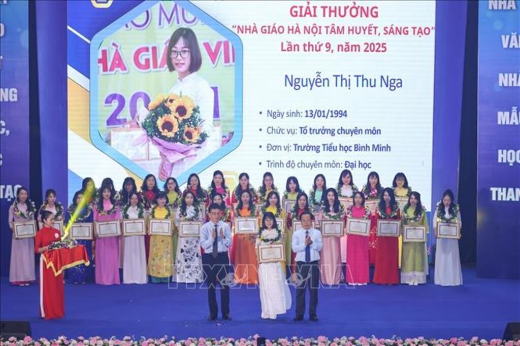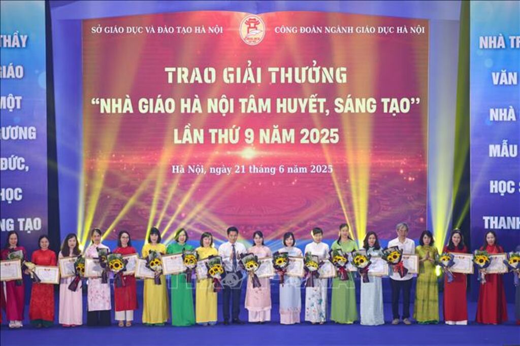Tại hội nghị, Ban tổ chức đã trao giải thưởng “Nhà giáo Hà Nội tâm huyết, sáng tạo” năm 2025 cho 153 nhà giáo; Tổng Liên đoàn Lao động Việt Nam tặng bằng khen cho 2 tập thể, 5 cá nhân có thành tích xuất sắc trong phong trào thi đua lao động giỏi và xây dựng tổ chức công đoàn vững mạnh; Liên đoàn Lao động thành phố Hà Nội tặng cờ thi đua cho 4 tập thể, tặng bằng khen cho 17 tập thể, 26 cá nhân có thành tích xuất sắc trong hoạt động công đoàn. Bên cạnh đó, Công đoàn Giáo dục Việt Nam tặng bằng khen cho 11 tập thể, 13 cá nhân có thành tích xuất sắc trong phong trào thi đua Dạy tốt, học tốt.../.