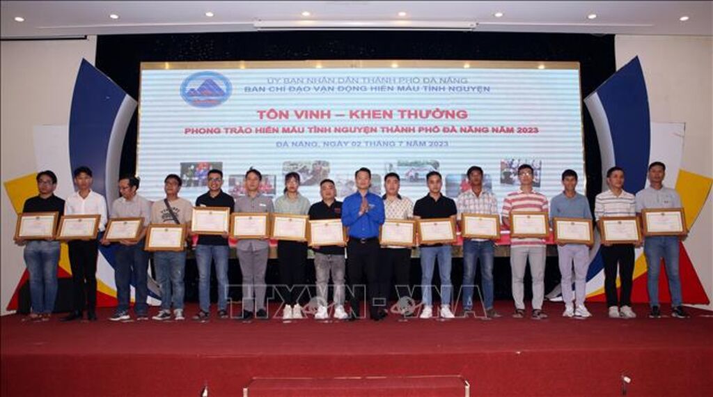 TTXVN - Ngày 2/7, Ban Chỉ đạo vận động hiến máu tình nguyện thành phố Đà Nẵng tổ chức Lễ Tôn vinh, khen thưởng người hiến máu tình nguyện tiêu biểu năm 2022.