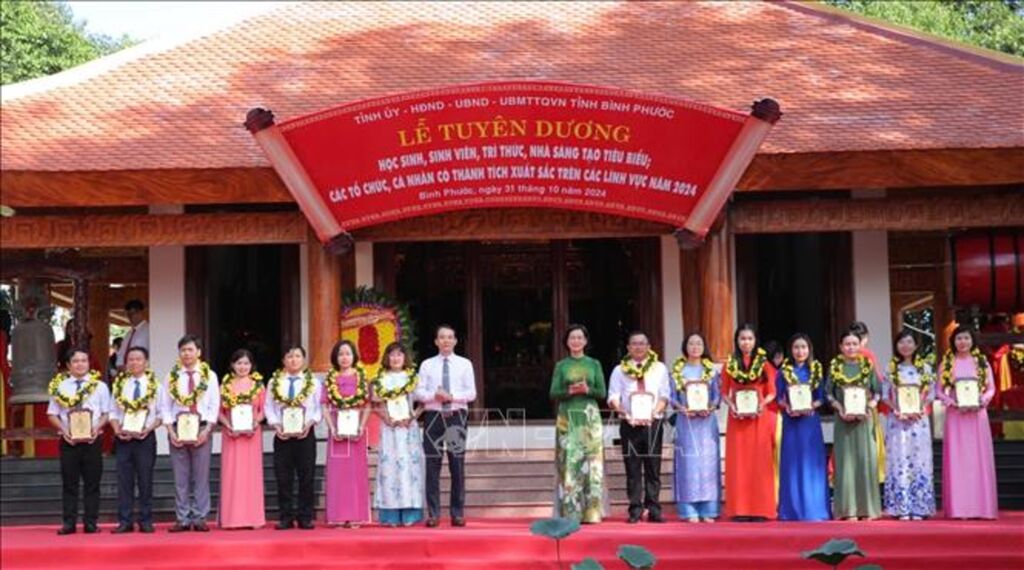 Ngày 30/11, tại Đền thờ Vua Hùng (huyện Phú Riềng), tỉnh Bình Phước tổ chức tuyên dương học sinh, sinh viên, trí thức, nhà sáng tạo tiêu biểu; các tổ chức, cá nhân có thành tích xuất sắc trên các lĩnh vực năm 2024.
