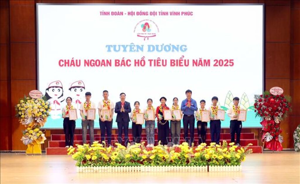 Hội đồng Đội tỉnh Vĩnh Phúc đã tuyên dương 10 đại biểu Cháu ngoan Bác Hồ tiêu biểu năm 2025 và 9 tổng phụ trách Đội tiêu biểu giai đoạn 2023-2025./.