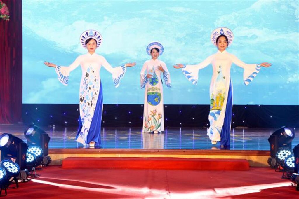 Ban Tổ chức dành tặng các nữ đoàn viên, người lao động phần trình diễn bộ sưu tập áo dài mang tên “Vinh Quy Bái Tổ” của nhà thiết kế thời trang Đặng Hồng Linh Anh, một người con quê hương Hải Dương.
