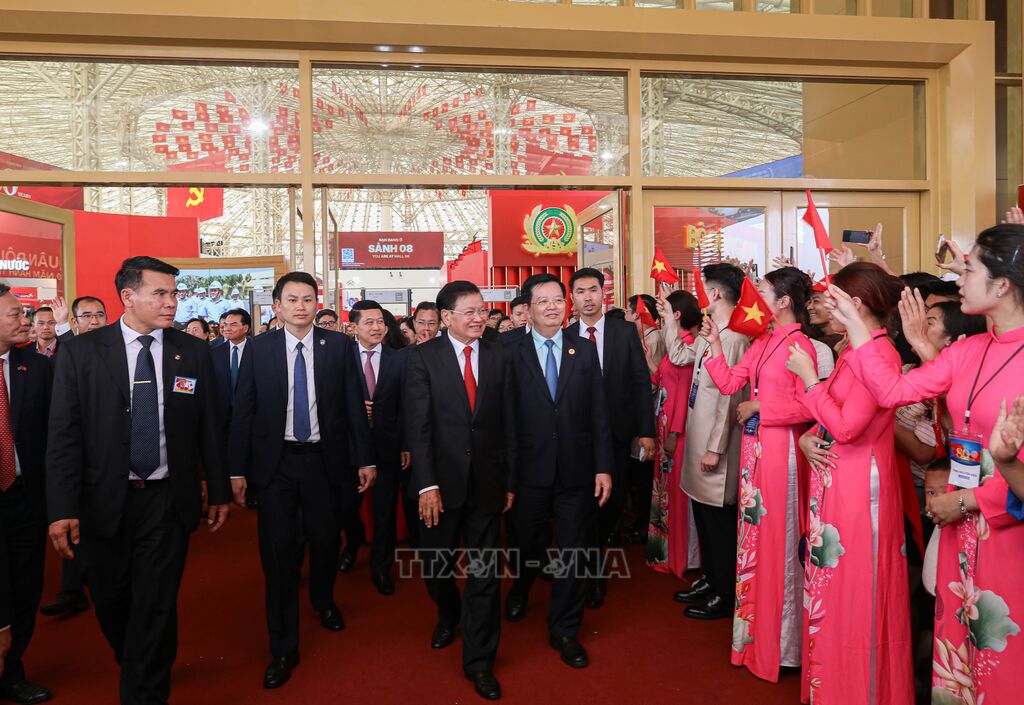 Chiều 2/9, Đoàn đại biểu cấp cao Đảng, Nhà nước Cộng hòa Dân chủ Nhân dân Lào do Tổng Bí thư, Chủ tịch nước Thongloun Sisoulith làm Trưởng đoàn và Đoàn đại biểu cấp cao Campuchia do Chủ tịch Đảng Nhân dân Campuchia (CPP), Chủ tịch Thượng viện Campuchia Hun Sen làm Trưởng đoàn đã tham quan Triển lãm thành tựu đất nước “80 năm hành trình Độc lập - Tự do - Hạnh phúc” tại Trung tâm Triển lãm quốc gia, nhân dịp sang Việt Nam dự Lễ kỷ niệm 80 năm Cách mạng tháng Tám và Quốc khánh 2/9.