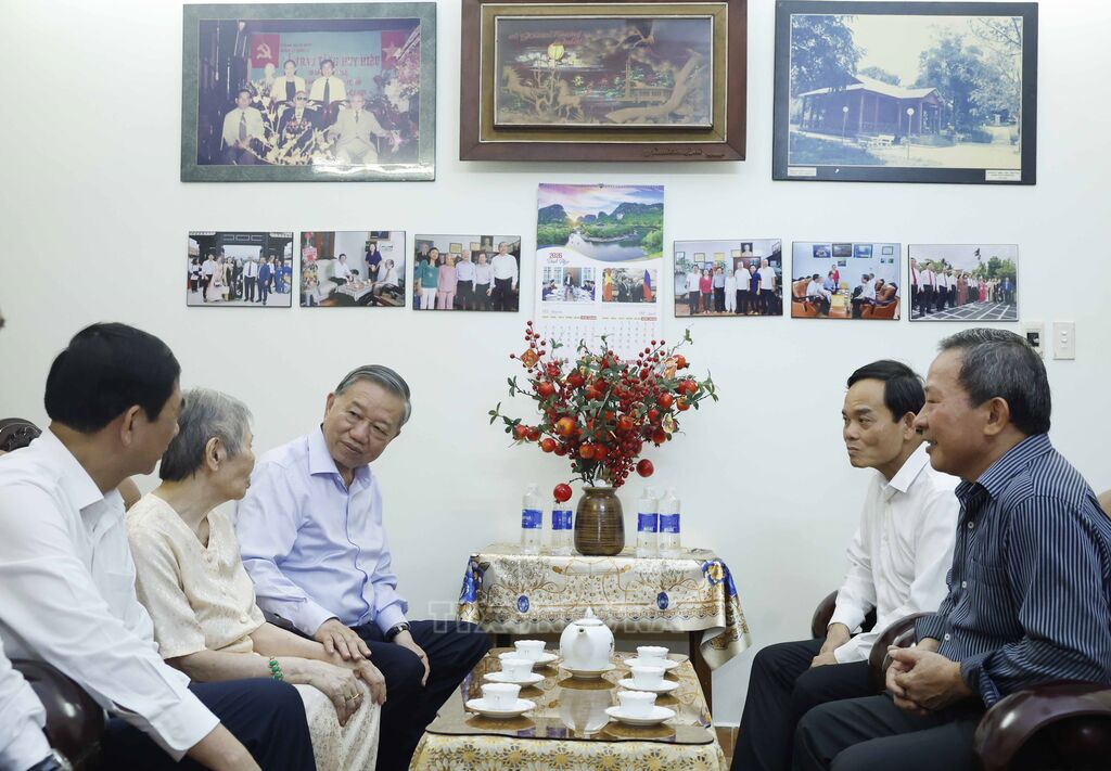 Đồng chí Tổng Bí thư, Chủ tịch nước Tô Lâm và Đoàn công tác đã thăm hỏi tình hình đời sống, công tác của thân nhân các đồng chí và gửi tới toàn thể gia đình lời chúc sức khỏe, hạnh phúc.