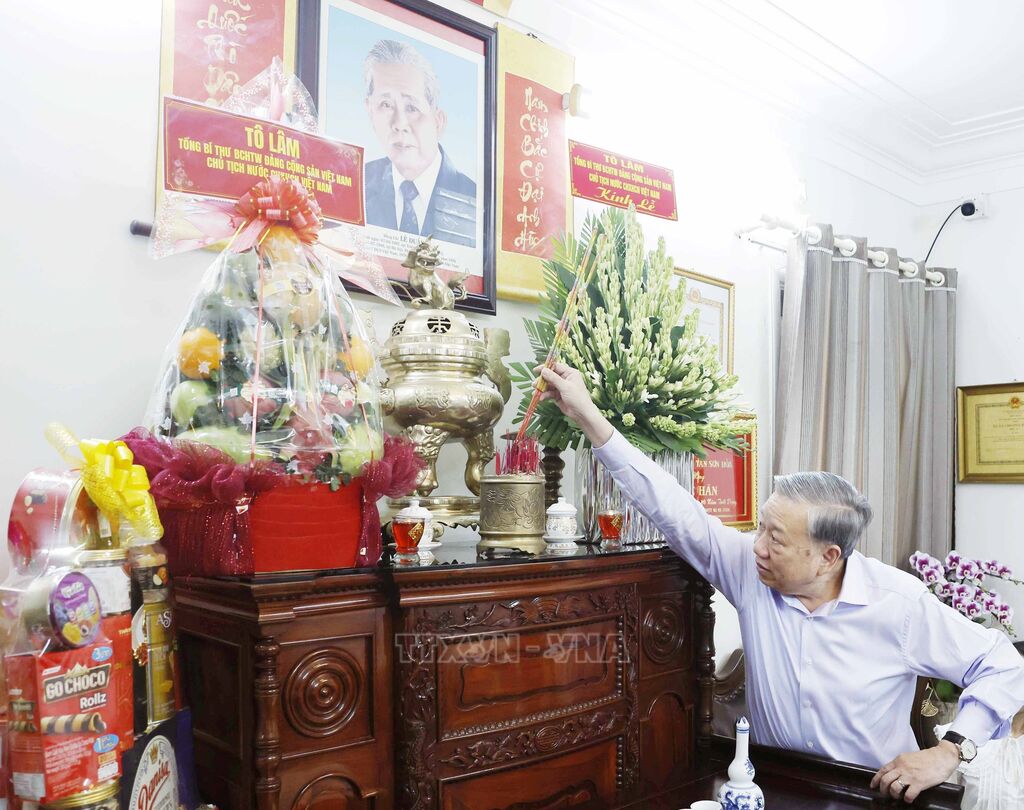 Tổng Bí thư, Chủ tịch nước Tô Lâm và Đoàn công tác đã thành kính dâng hoa, dâng hương tưởng nhớ các đồng chí lãnh đạo tiền bối và tri ân những công lao đóng góp to lớn, cống hiến trọn đời cho Đảng, cho dân tộc, vì lý tưởng cao đẹp cho Tổ quốc Việt Nam độc lập, thống nhất và đi lên chủ nghĩa xã hội, nhân dân Việt Nam có cuộc sống tự do, ấm no, hạnh phúc. Đồng chí Tổng Bí thư, Chủ tịch nước Tô Lâm và Đoàn công tác cũng đã thăm hỏi tình hình đời sống, công tác của thân nhân các đồng chí và gửi tới toàn thể gia đình lời chúc sức khỏe, hạnh phúc./.