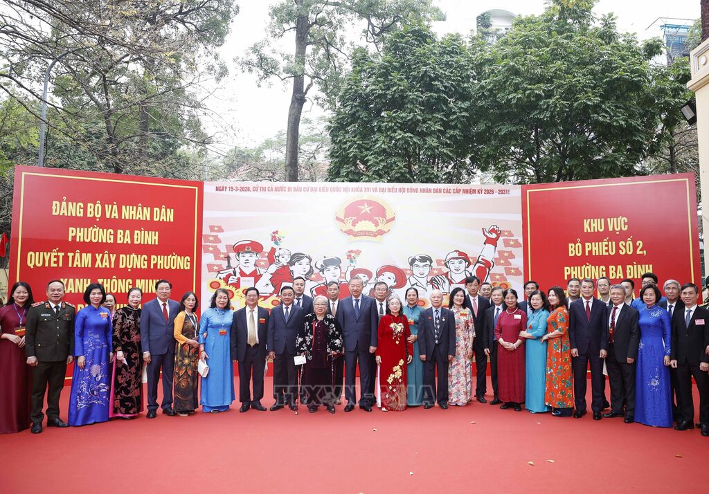 Hòa trong không khí tưng bừng, phấn khởi của Ngày Bầu cử - Ngày hội của toàn dân, sáng 15/3, Tổng Bí thư Tô Lâm, Bí thư Quân ủy Trung ương và Đoàn công tác của Trung ương đã đến khu vực bỏ phiếu số 2, phường Ba Đình, thành phố Hà Nội, bỏ phiếu bầu cử đại biểu Quốc hội khóa XVI và đại biểu Hội đồng nhân dân các cấp nhiệm kỳ 2026-2031.