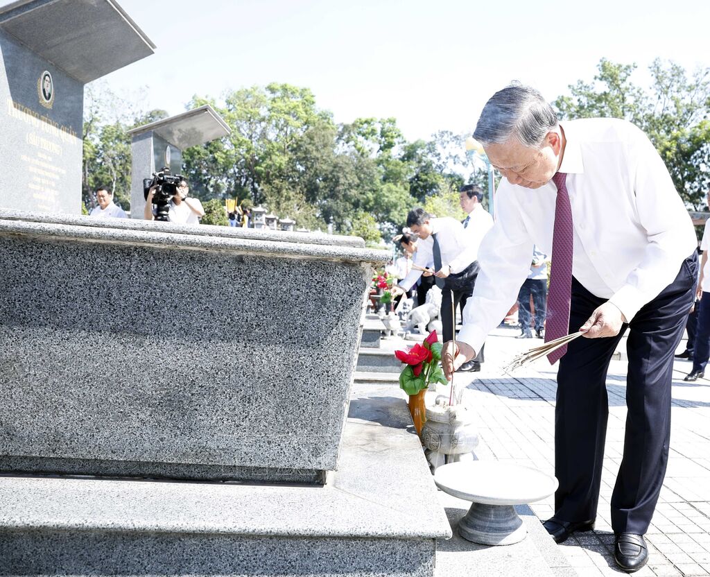 Nhân dịp năm mới 2026 và chuẩn bị đón Xuân Bính Ngọ, trong chương trình công tác tại Thành phố Hồ Chí Minh và Tây Ninh, chiều 9/2, Tổng Bí thư Tô Lâm và Đoàn công tác của Trung ương đã đến dâng hoa, dâng hương tại Nghĩa trang liệt sĩ Trà Võ (tỉnh Tây Ninh), tưởng nhớ, tri ân công lao to lớn của các Anh hùng liệt sĩ đã anh dũng hy sinh vì độc lập, tự do của Tổ quốc và hạnh phúc của nhân dân.