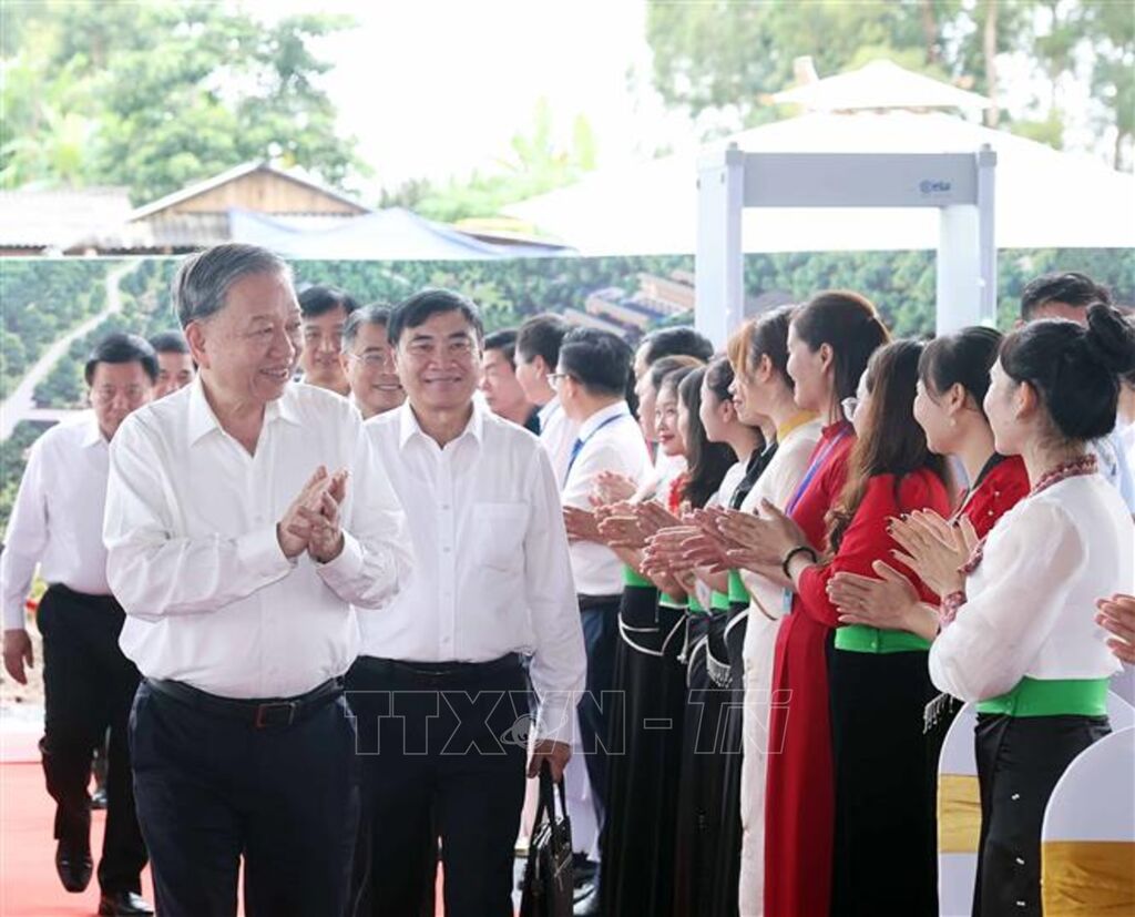Tổng Bí thư nêu rõ, chủ trương đầu tư xây dựng 248 trường nội trú liên cấp là một chủ trương đúng đắn có ý nghĩa nhân văn sâu sắc, thể hiện sự quan tâm đặc biệt của Đảng, Nhà nước đối với đồng bào vùng biên giới, vùng sâu, vùng xa, còn nhiều khó khăn. Xây dựng trường lớp không chỉ để các cháu có điều kiện học tập tốt hơn, mà còn là hướng tới mục tiêu lâu dài để nâng cao chất lượng đời sống nhân dân cùng biên giới, góp phần giữ gìn chủ quyền lãnh thổ quốc gia từ gốc rễ, đó là con người, là cộng đồng dân cư gắn bó với đất, với rừng, với đường biên cột mốc.