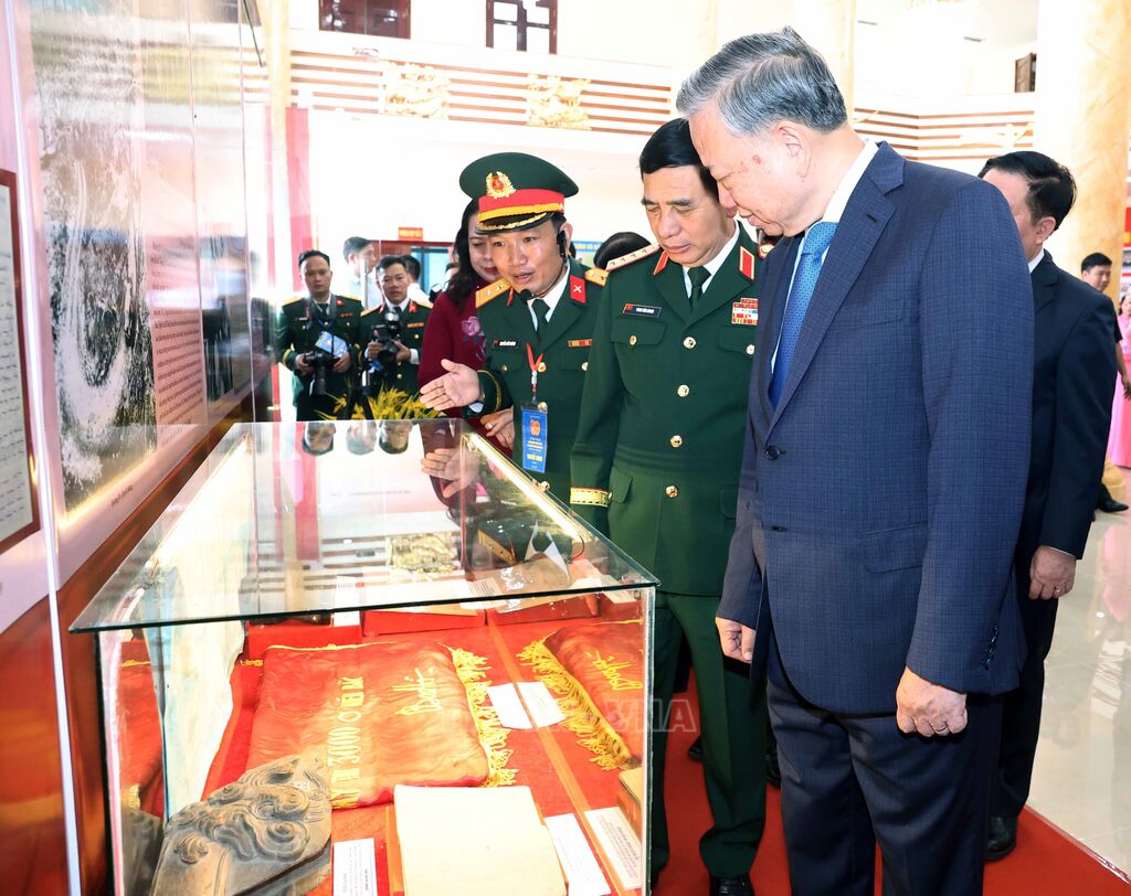 Nhân dịp này, Tổng Bí thư Tô Lâm đã tặng Lực lượng vũ trang Quân khu 4 tác phẩm “Bác Hồ về thăm quê năm 1961”, đây là món quà ý nghĩa, thể hiện tình cảm sâu sắc và niềm tin của Lãnh đạo Đảng, Nhà nước đối với Lực lượng vũ trang trên quê hương của Người./.