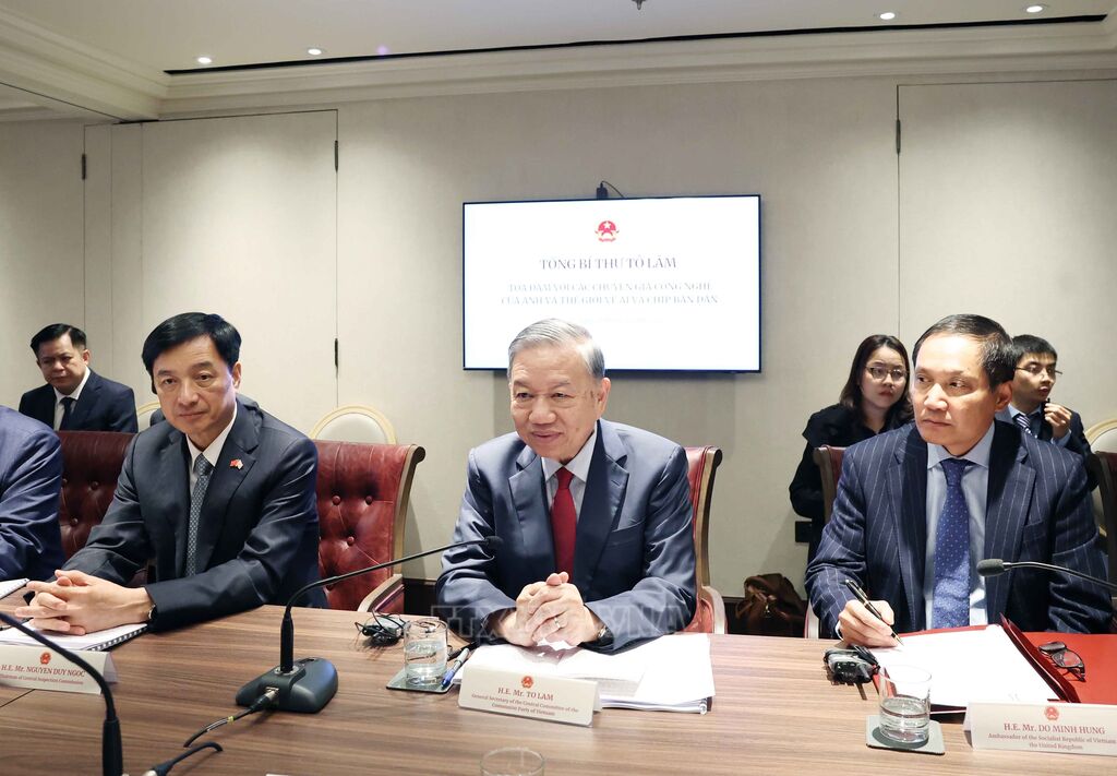 Theo phóng viên TTXVN tại London, trong khuôn khổ chuyến thăm chính thức Liên hiệp Vương quốc Anh và Bắc Ireland từ ngày 28 - 30/10, Tổng Bí thư Tô Lâm và Đoàn đại biểu cấp cao Việt Nam đã dự buổi tọa đàm với các nhà chiến lược về trí tuệ nhân tạo (AI) và công nghệ hàng đầu của Anh cũng như thế giới.