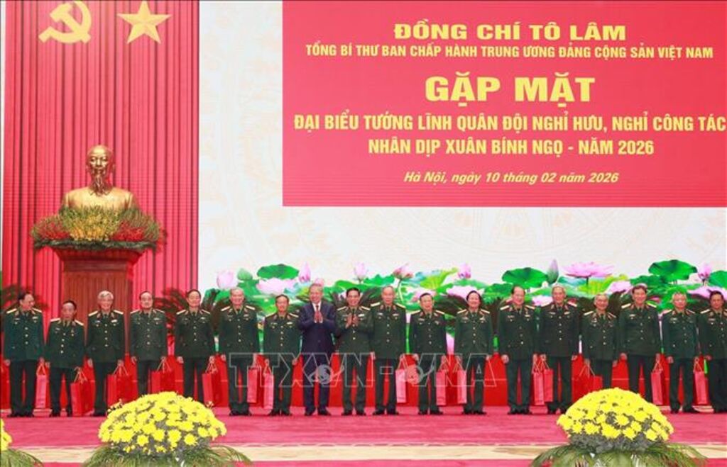 Nhân dịp đón Xuân Bính Ngọ năm 2026, tại Hội trường Bộ Quốc phòng, Tổng Bí thư Tô Lâm, Bí thư Quân ủy Trung ương đã gặp mặt đại biểu tướng lĩnh quân đội nghỉ hưu, nghỉ công tác, tôn vinh và tri ân những đóng góp to lớn đối với các thế hệ cán bộ đi trước trong sự nghiệp đấu tranh giải phóng dân tộc, xây dựng và bảo vệ Tổ quốc Việt Nam xã hội chủ nghĩa.
