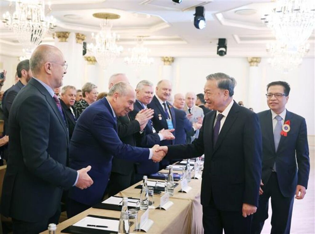Tại buổi gặp, các đại biểu Nga bày tỏ vui mừng, vinh dự được đón tiếp Tổng Bí thư Tô Lâm và đoàn đại biểu cấp cao Việt Nam; cảm ơn những tình cảm gắn bó, sâu đậm mà lãnh đạo và nhân dân Việt Nam luôn dành cho những người bạn Nga; khẳng định sẽ tiếp tục nỗ lực để vun đắp, phát triển tình hữu nghị giữa nhân dân hai nước, đóng góp tích cực cho quan hệ hữu nghị truyền thống và Đối tác chiến lược toàn diện Việt Nam – LB Nga; nhất trí với những phương hướng, biện pháp lớn nhằm tăng cường và củng cố quan hệ Đối tác chiến lược toàn diện Việt – LB Nga.