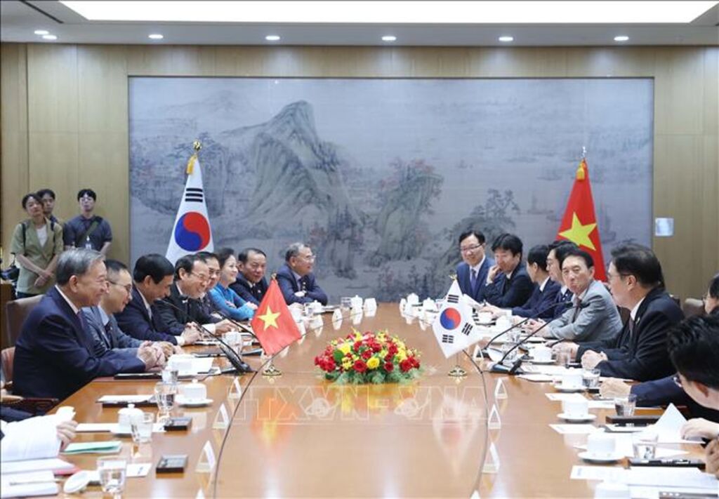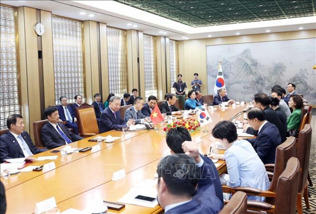 Hai nhà lãnh đạo bày tỏ vui mừng vì quan hệ hai nước đang phát triển tốt đẹp trên tất cả các lĩnh vực, mong muốn đưa quan hệ hợp tác Việt - Hàn đi vào chiều sâu thực chất, tương xứng với mối quan hệ Đối tác Chiến lược toàn diện, cũng như tiềm năng phát triển to lớn của hai nước, trong đó hợp tác nghị viện giữ vai trò hết sức quan trọng. Trên tinh thần quan hệ Đối tác Chiến lược toàn diện, hai nhà lãnh đạo đánh giá cao kết quả hợp tác tốt đẹp giữa Quốc hội hai nước; nhất trí thúc đẩy vai trò của cơ quan lập pháp hai nước trong phối hợp, hỗ trợ và đôn đốc các bộ, ngành và địa phương thực hiện các thỏa thuận hợp tác đã ký giữa hai Chính phủ; thúc đẩy kết nối hai nền kinh tế phát triển thực chất, hiệu quả và toàn diện. Tổng Bí thư Tô Lâm đề nghị hai bên tiếp tục triển khai hiệu quả, toàn diện các nội dung Thỏa thuận hợp tác đã ký giữa Quốc hội hai nước; đẩy mạnh hợp tác, giao lưu Quốc hội hai nước, tăng cường trao đổi đoàn cấp cao, giao lưu giữa các nghị sĩ, nghị sĩ trẻ; phát huy vai trò cầu nối của các Nhóm nghị sĩ hữu nghị mỗi nước.