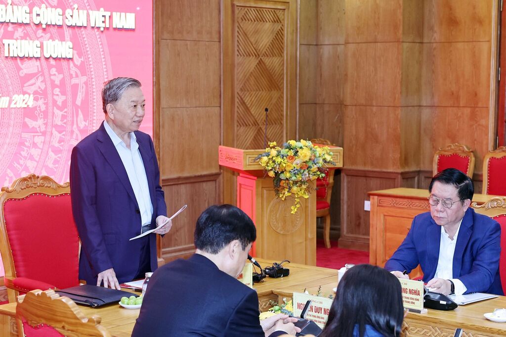 Tổng Bí thư Tô Lâm cũng chỉ rõ những vấn đề mà Ban Tuyên giáo Trung ương, ngành Tuyên giáo cần khẩn trương, quyết liệt quan tâm giải quyết để khắc phục cho được những tồn tại, hạn chế đã nêu ra.