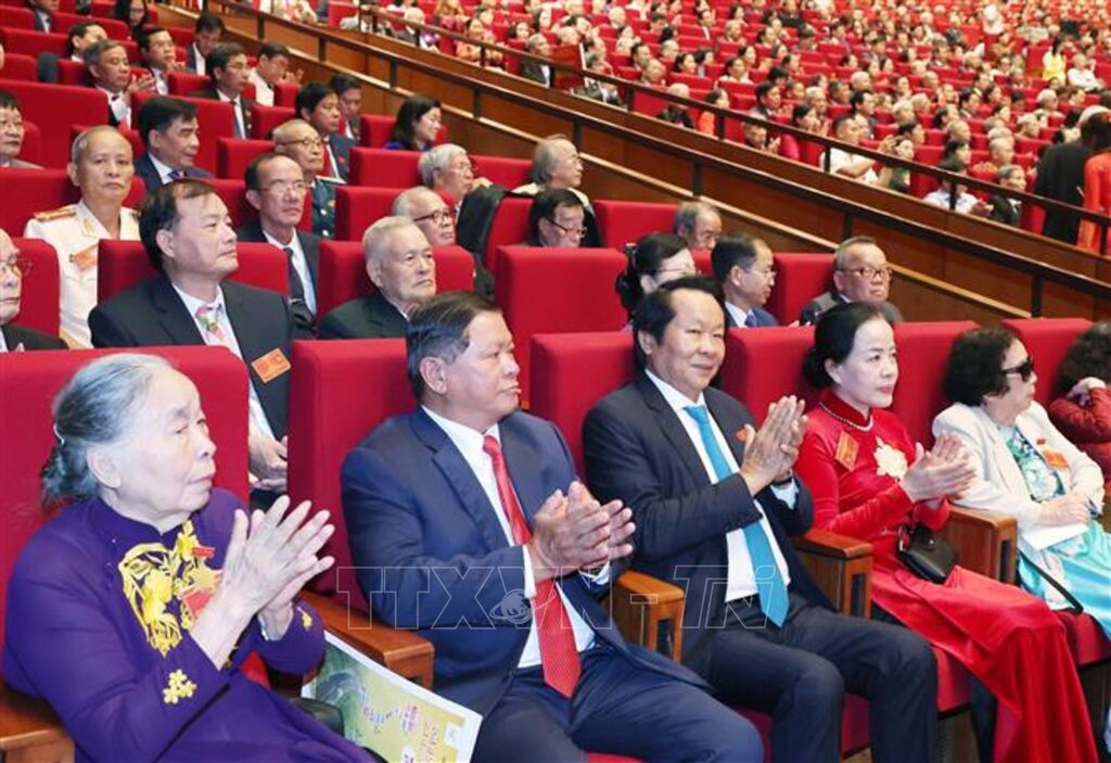 Tham dự cuộc gặp mặt có: Nguyên Tổng Bí thư Nông Đức Mạnh; Ủy viên Bộ Chính trị, Chủ tịch nước Lương Cường; Ủy viên Bộ Chính trị, Thủ tướng Chính phủ Phạm Minh Chính; nguyên Ủy viên Bộ Chính trị, nguyên Thủ tướng Chính phủ Nguyễn Tấn Dũng; Ủy viên Bộ Chính trị, Chủ tịch Quốc hội Trần Thanh Mẫn; các đồng chí nguyên Ủy viên Bộ Chính trị, nguyên Chủ tịch Quốc hội: Nguyễn Sinh Hùng, Nguyễn Thị Kim Ngân; Ủy viên Bộ Chính trị, Thường trực Ban Bí thư Trần Cẩm Tú.