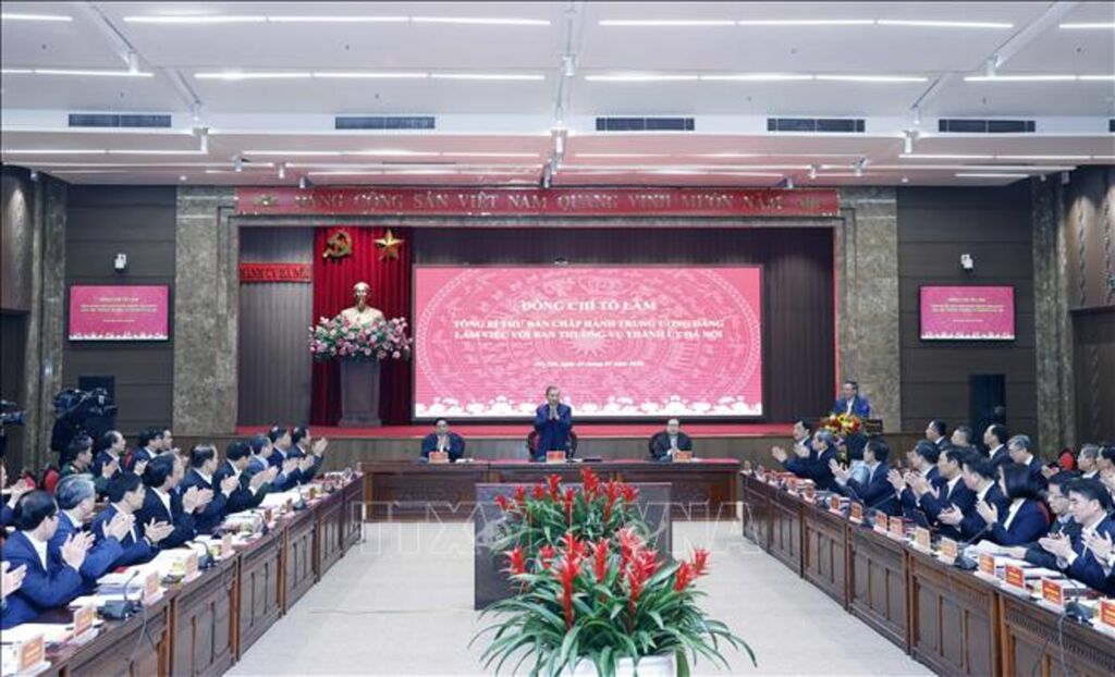 Cũng tại buổi làm việc, Tổng Bí thư Tô Lâm nhấn mạnh, chúng ta đang đứng trước một bước ngoặt phát triển có ý nghĩa lịch sử. Trong bối cảnh đó, vai trò của Hà Nội có ý nghĩa đặc biệt quan trọng. Vì vậy, Hà Nội không thể phát triển theo tư duy của một địa phương lớn, mà phải được định vị và vận hành như một trung tâm kiến tạo phát triển quốc gia, có vai trò dẫn dắt, định hình các mô hình phát triển mới, tư duy mới. Mỗi vấn đề Hà Nội giải quyết thành công và hiệu quả, từ quản trị đô thị, tổ chức không gian phát triển, xử lý ùn tắc, ô nhiễm, ngập úng đến kỷ luật đầu tư công, cải cách hành chính và chuyển đổi số… sẽ có tác động rất lớn đến cách nghĩ, cách làm của các địa phương cũng của toàn quốc. Hà Nội chậm, cả nước sẽ chậm.