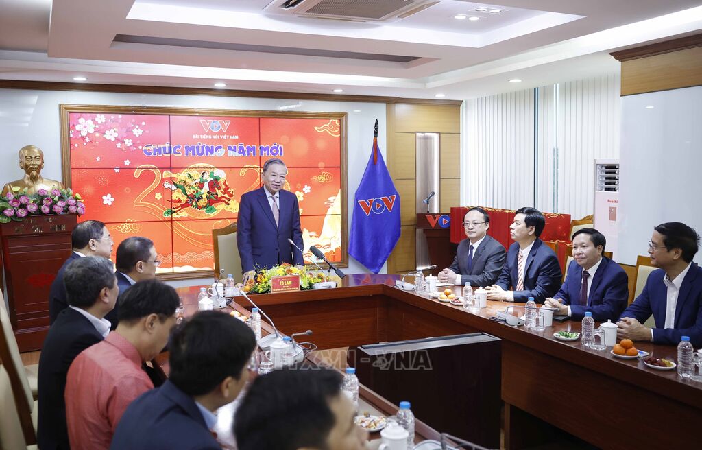 * Tới thăm và chúc Tết tại Đài Tiếng nói Việt Nam, Tổng Bí thư Tô Lâm chia sẻ cùng cán bộ, phóng viên, công nhân viên, kỹ thuật viên Đài Tiếng nói Việt Nam những người đang canh trời, giữ sóng, giữ nhịp thông tin cho đất nước, nhận định từ những thiết bị thô sơ thời chiến đến hệ thống phát thanh hiện đại hôm nay, Đài đã không ngừng lớn mạnh. Sóng của Đài phủ khắp đất liền, vươn ra Biển Đông, đến với bà con ngư dân, với cán bộ, chiến sĩ trên các đảo tiền tiêu, với đồng bào vùng sâu, vùng xa, biên giới. Khi bão lũ ập đến, khi điện lưới gián đoạn, khi nhiều loại hình truyền thông khác bị mất tín hiệu, thì tiếng nói phát thanh vẫn vang lên rõ ràng, kịp thời, chính xác. Ở những “vùng lõm" thông tin, nơi hạ tầng còn hạn chế, Đài Tiếng nói Việt Nam chính là cầu nối tin cậy giữa chính quyền và nhân dân.
