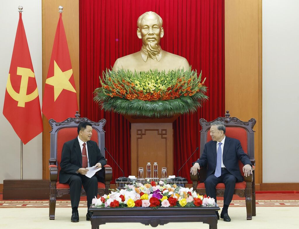 Tổng Bí thư Tô Lâm bày tỏ vui mừng về sự phát triển tốt đẹp của mối quan hệ Việt Nam – Lào, trong đó có sự đóng góp rất quan trọng của lực lượng an ninh hai nước; khẳng định Việt Nam luôn coi trọng và dành ưu tiên cao nhất cho việc củng cố và tăng cường quan hệ hữu nghị vĩ đại, đoàn kết đặc biệt, hợp tác toàn diện, gắn kết chiến lược Việt Nam – Lào, coi đây là nhiệm vụ chiến lược, có ý nghĩa sống còn đối với sự phát triển của mỗi nước; nhấn mạnh Việt Nam trước sau như một luôn ủng hộ Lào phát triển, sẵn sàng chia sẻ kinh nghiệm với Lào trên tất cả các lĩnh vực, hai nước Việt Nam – Lào sẽ nắm chặt tay vững bước cùng nhau phát triển.