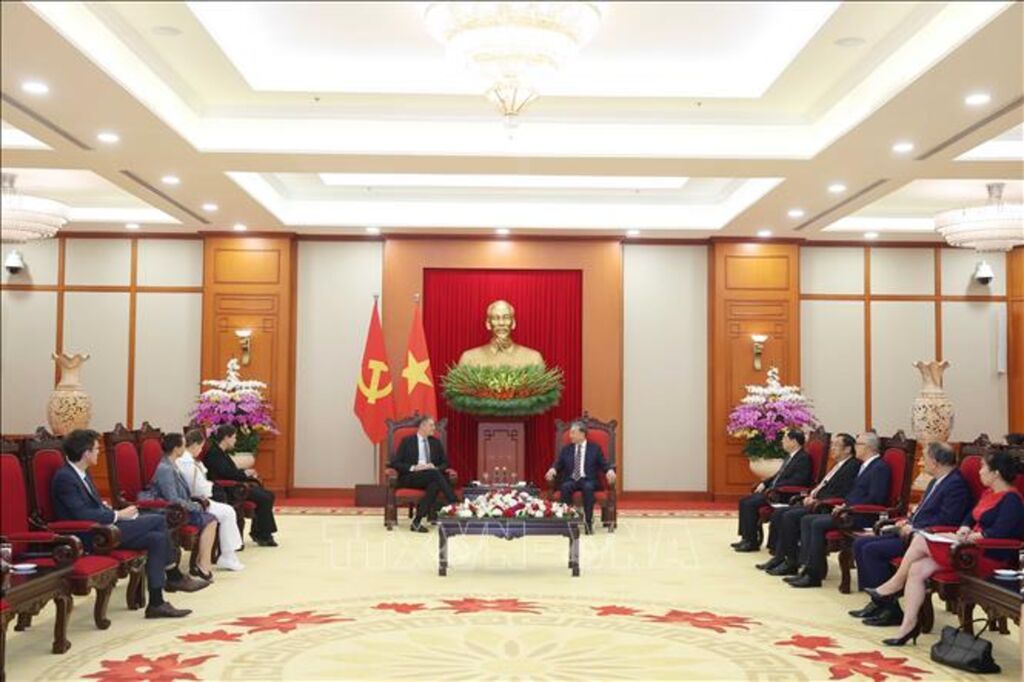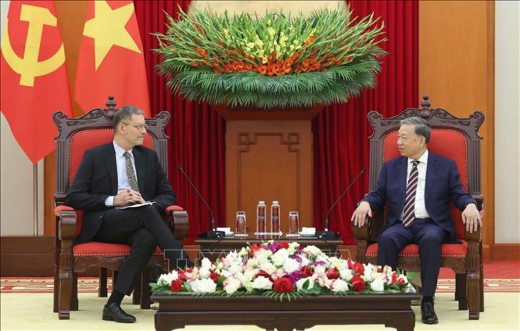 Bày tỏ hài lòng với những tiến triển tích cực của mối quan hệ Việt Nam - Pháp thời gian qua, đặc biệt trong lĩnh vực thương mại - đầu tư, một trong những trụ cột quan trọng hàng đầu trong khuôn khổ Đối tác chiến lược toàn diện, Tổng Bí thư cho rằng hai bên cần tiếp tục phối hợp chặt chẽ nhằm duy trì và củng cố hệ thống thương mại đa phương, đồng thời thúc đẩy mạnh mẽ thương mại song phương và mở cửa hơn nữa thị trường mỗi bên, nhất là trong bối cảnh nền kinh tế thế giới đang đối mặt với nhiều khó khăn, thách thức, cạnh tranh thương mại quốc tế ngày càng gia tăng. Tổng Bí thư nhất trí với các đề xuất của Đại sứ Pháp về việc triển khai hiệu quả và tận dụng tốt các cơ hội to lớn từ Hiệp định Thương mại tự do Việt Nam - EU (EVFTA); đẩy mạnh hợp tác trong các lĩnh vực thế mạnh hai bên như cơ sở hạ tầng, giao thông, năng lượng tái tạo, năng lượng xanh, khoa học công nghệ, đổi mới sáng tạo, hàng không vũ trụ, đào tạo nguồn nhân lực chất lượng cao... Nhân dịp này, Tổng Bí thư đề nghị hai nước tiếp tục làm sâu sắc hợp tác trong các lĩnh vực truyền thống như y tế, văn hóa, bảo tồn, bảo tàng, ký ức lịch sử - lưu trữ, hợp tác giữa các địa phương…