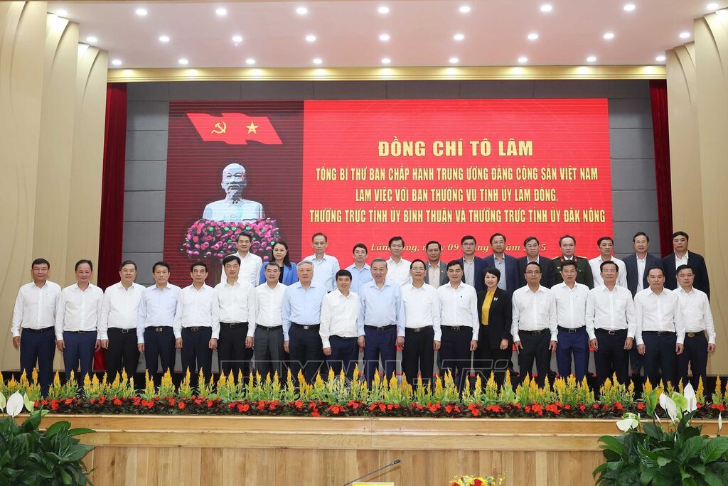 Sau khi nghe báo cáo và các ý kiến trao đổi tại buổi làm việc, phát biểu kết luận Tổng Bí thư Tô Lâm nhấn mạnh, chủ trương sáp nhập ba tỉnh để hình thành tỉnh Lâm Đồng (mới) nhằm nâng cao hiệu lực, hiệu quả quản trị, quản lý, tổ chức lại không gian phát triển theo hướng mở rộng, gắn kết, bền vững, phát huy lợi thế theo quy mô và tối ưu hóa nguồn lực. Khi hợp nhất, ba tỉnh sẽ tạo thành một thực thể kinh tế - hành chính lớn mạnh hơn, với diện tích lớn nhất cả nước, đầu tư công tăng lên đáng kể, đủ sức đề xuất cơ chế đặc thù, thu hút các nguồn lực chiến lược và dẫn dắt phát triển vùng.