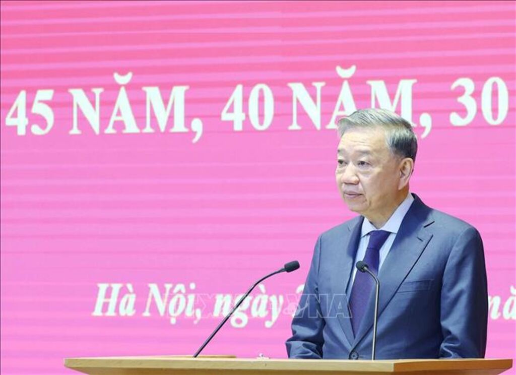 Tổng Bí thư Tô Lâm dự, trao Huy hiệu Đảng và phát biểu chúc mừng; Chủ tịch nước Lương Cường đã gửi lẵng hoa chúc mừng.