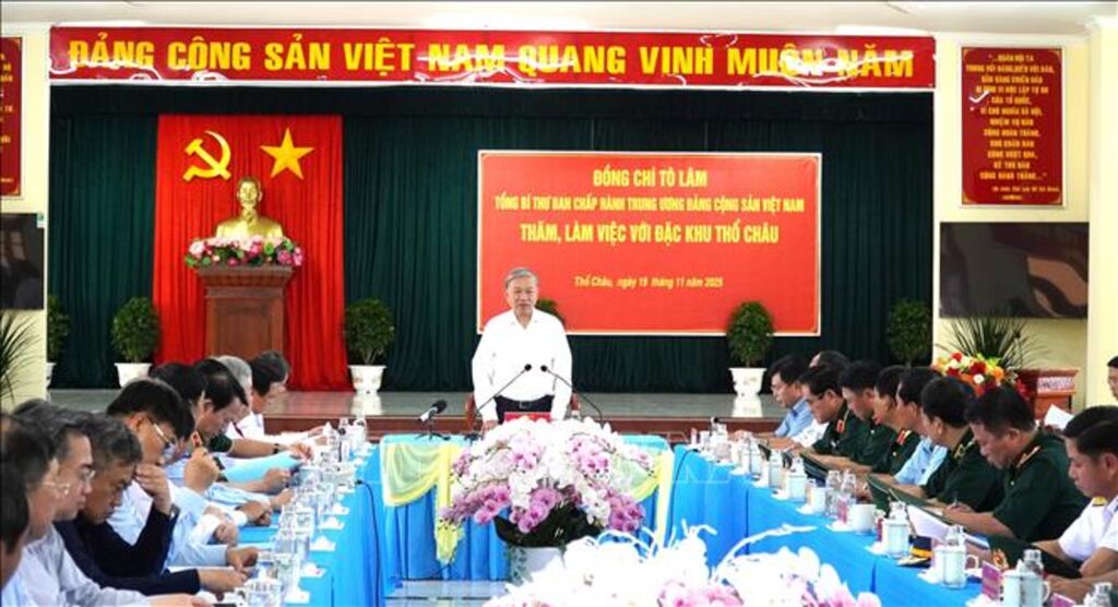 Chiều 19/11, Tổng Bí thư Tô Lâm, Bí thư Quân ủy Trung ương và Đoàn công tác Trung ương đã đến thăm, làm việc tại đặc khu Thổ Châu, tỉnh An Giang.