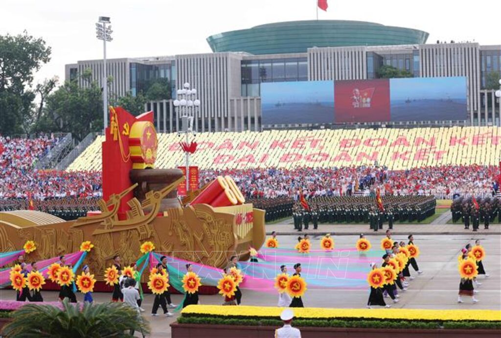 Sau khi thực hiện phần nghi lễ, lần lượt các khối: Nghi trượng (gồm xe mô hình Quốc huy; khối cờ Đảng, cờ Tổ quốc; xe rước chân dung Chủ tịch Hồ Chí Minh; xe mô hình biểu tượng 80 năm Cách mạng tháng Tám và Quốc khánh nước Cộng hòa xã hội chủ nghĩa Việt Nam); khối đi bộ (gồm khối đi bộ của Quân đội nhân dân Việt Nam, các khối quân đội nước ngoài, các khối dân quân du kích, các khối đi bộ của Công an nhân dân Việt Nam); khối xe, pháo quân sự, xe đặc chủng Công an; các khối quần chúng (đại diện công nhân, nông dân, thanh niên, phụ nữ, cựu chiến binh, kiều bào...) lần lượt tiến qua lễ đài trước cửa Lăng Chủ tịch Hồ Chí Minh.