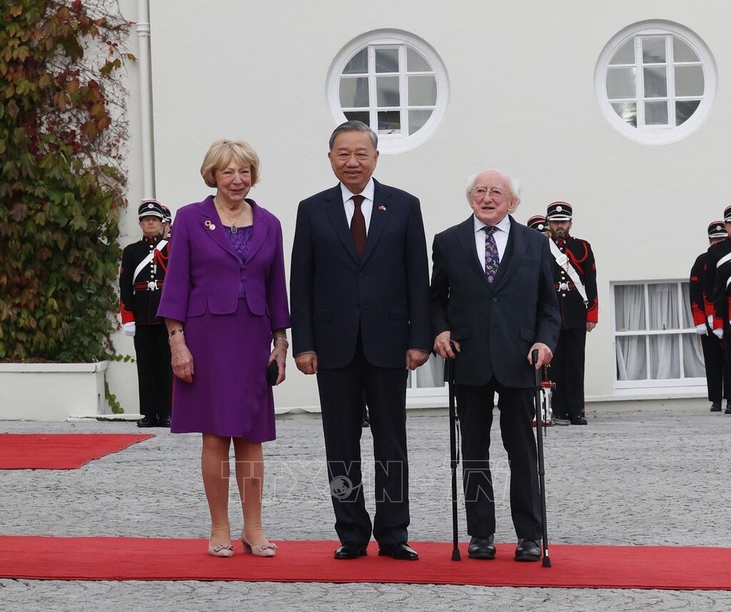 Theo đặc phái viên TTXVN, lúc 11h40 ngày 2/10 (theo giờ địa phương), Lễ đón Tổng Bí thư, Chủ tịch nước Tô Lâm tới thăm cấp Nhà nước Ireland từ ngày 1 - 3/10 được tổ chức trọng thể tại Phủ Tổng thống Ireland. Tổng thống Ireland Michael D. Higgins và Phu nhân chủ trì Lễ đón.