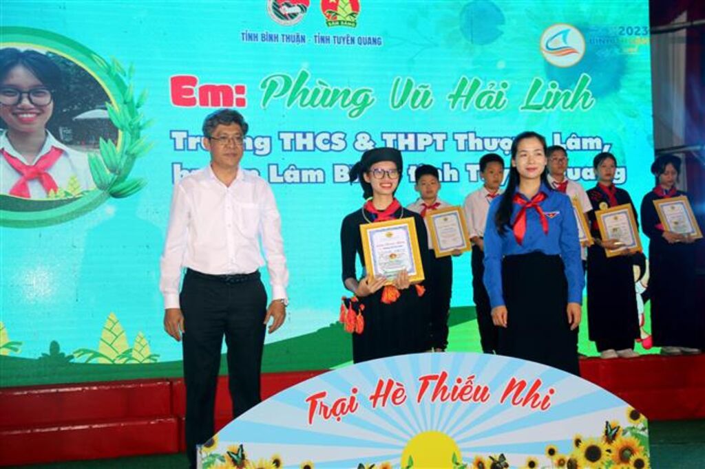 Diễn ra từ ngày 28 - 30/7, Trại hè Thiếu nhi tỉnh Bình Thuận - Tuyên Quang lần thứ I, năm 2023 có nhiều hoạt động thiết thực như: Tham quan Bảo tàng Hồ Chí Minh - Chi nhánh Bình Thuận và Khu Di tích Dục Thanh; khởi công “Nhà đoàn kết” cho thiếu nhi có hoàn cảnh khó khăn; Diễn đàn Giáo dục đạo đức lối sống - sử dụng mạng xã hội an toàn; học tập, trao đổi kinh nghiệm công tác đội hai tỉnh Bình Thuận và Tuyên Quang…