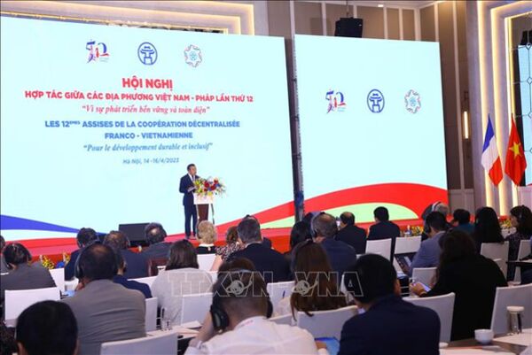 TTXVN - Tối 15/4, các đại biểu tham dự Hội nghị hợp tác giữa các địa phương Việt Nam - Pháp lần thứ 12 đã có buổi tham quan, trải nghiệm hai di sản Hà Nội về đêm là Văn Miếu – Quốc Tử Giám và Hoàng thành Thăng Long.