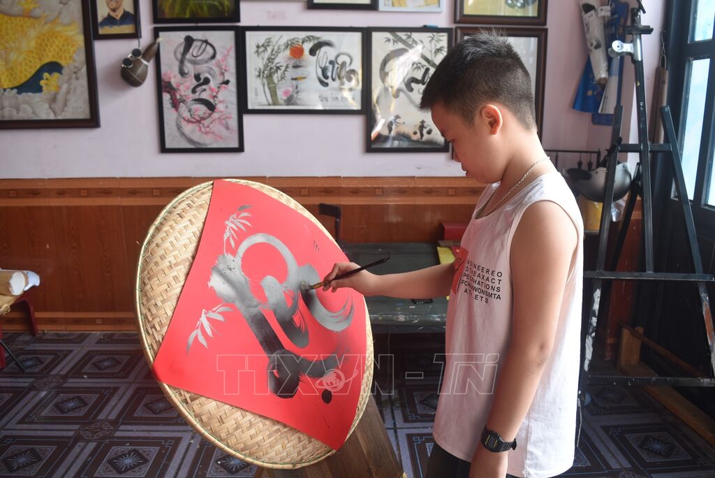 Niềm đam mê ấy không bị mai một theo thời gian. Trái lại, càng lớn, Nghĩa càng dành nhiều thời gian cho việc luyện vẽ. Dù chưa từng tham gia lớp năng khiếu chính quy nào, cậu bé lớp 5 vẫn có thể tự học thư pháp qua Youtube, tự nghiên cứu cách đánh nét, đổ màu. Mỗi ngày, em dành từ 3 - 4 giờ thực hành, đôi khi say sưa đến mức quên ăn cơm hoặc vẽ xong mới đi ngủ.